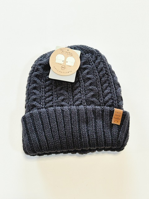 シンプルなケーブル編みのニット帽。
